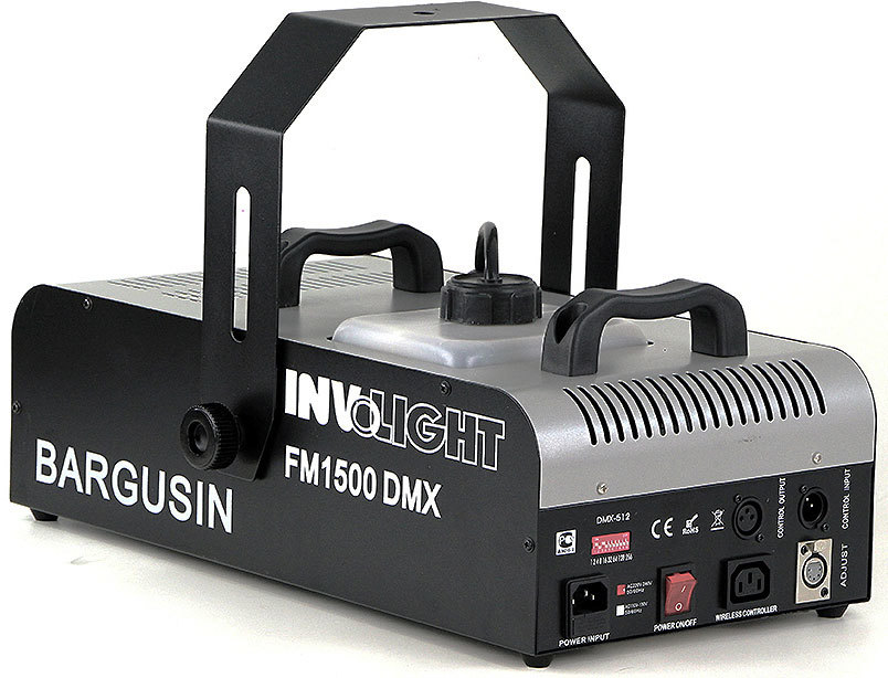 Involight FM1500DMX - дым машина. Данная модель оснащена нагревательным элементом мощностью 1500 Вт, а длина выброса дыма достигает 12 м. Также данный генератор дыма оснащен встроенным баком для жидкости объемом 2 литра и пультом ДУ.
