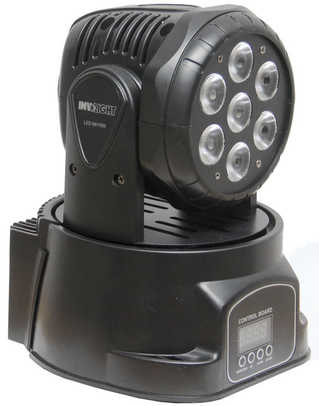Основные характеристикиПроизводительInvolightСтрана производстваКитай Срок гарантии12 месяцев Involight LEDMH78W - LED вращающаяся голова, 7x8 Вт RGBW мультичип, DMX-512