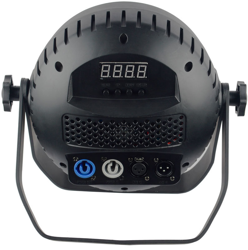 Программы от звуковой активации, DMX (6, 7, 9, 12 или 24 каналов), Управление от дистанционного пульта (поставляется в комплекте). Для настройки LEDPAR12HEX установлен LED-дисплей с 4 клавишами управления и индикацией по меню. Система терморегулирования обеспечивает длительный срок службы светодиодов. Автоматическая скорость вентилятора полностью контролирует внутреннюю рабочую температуру прибора. Для удобства подключения предлагается совместимые разъемы питания PowerCon Вход/Выход
