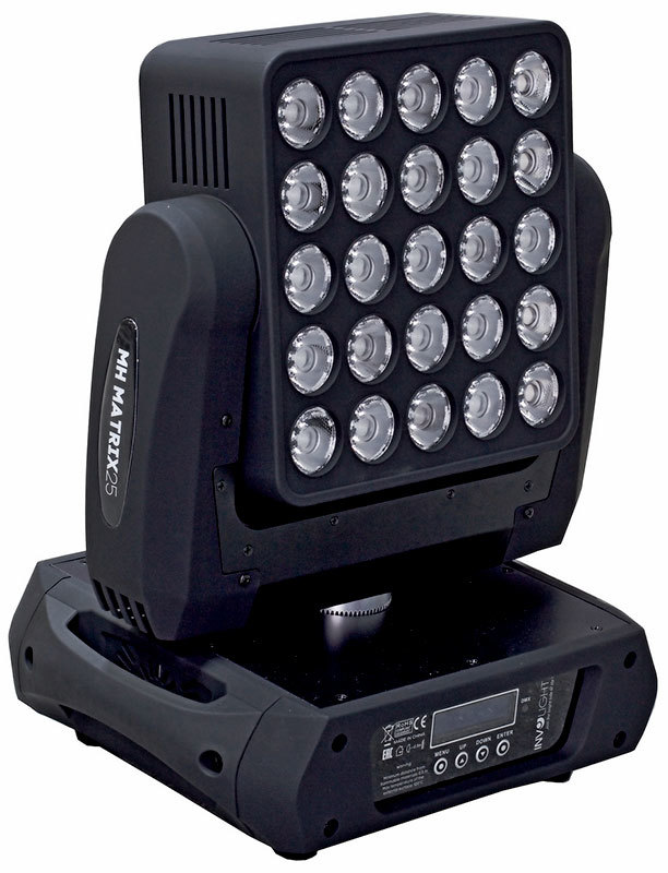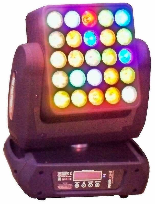 Голова вращения модельного ряда "Матрикс" INVOLIGHT MH MATRIX25. Матричная панель включает в себя 25 мощных 12Вт RGBW светодиодов. Бесконечное движение по PAN/TILT. Возможность управления каждым из 25 LED-сегментов!
