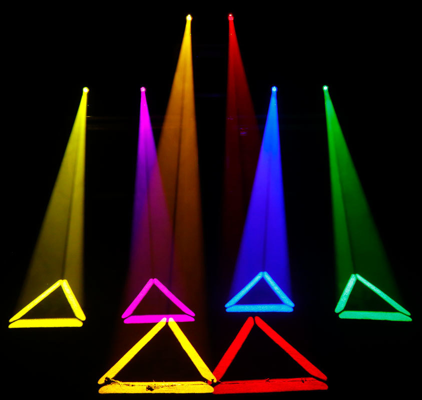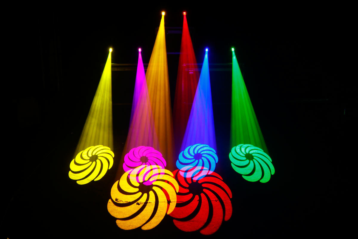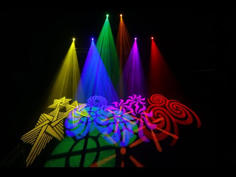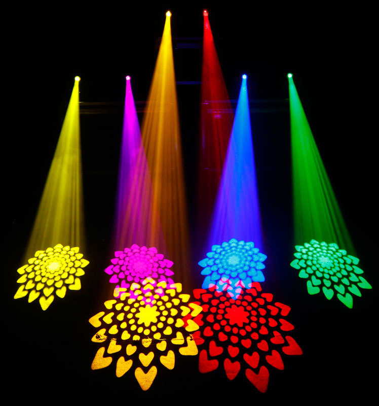 - Вращающиеся гобо: 7 взаимозаменяемых вращающихся + открытый