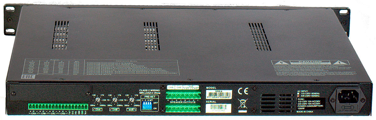Invotone D500.4 - четырехканальный усилитель мощности, класса D, 600Вт/4 Ома,1200Вт/2 Ома