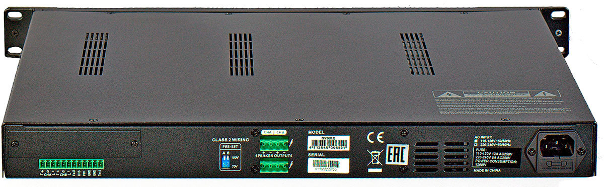 Invotone DV500.2 - двухканальный трансляционный усилитель мощности, 70/100V