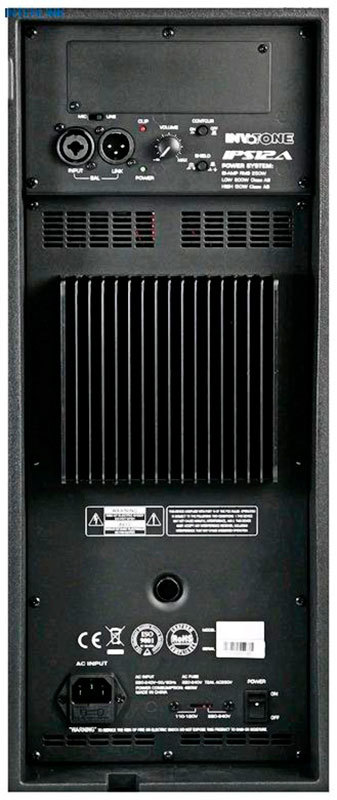 - Усилитель класса D, bi-amp, с импульсным блоком питания.