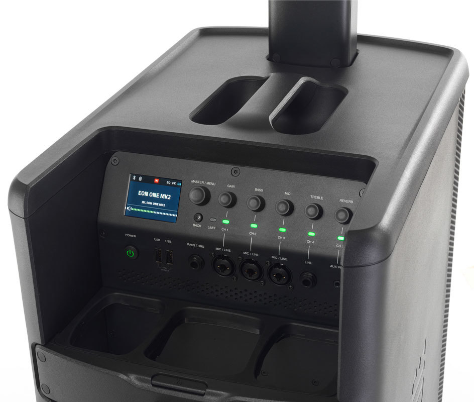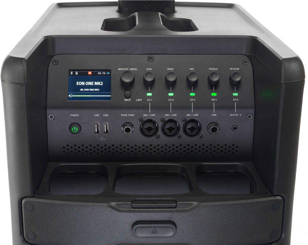 JBL EON ONE MK2 аккумуляторная акустическая система. НЧ 1х10”, ВЧ 8х 2”, SPL 123 дБ, раскрытие 140°H x 30°V, частотная характеристика 37 Гц–20 кГц