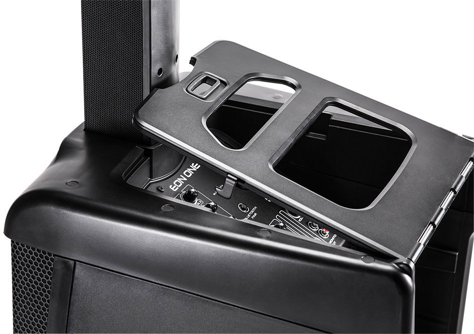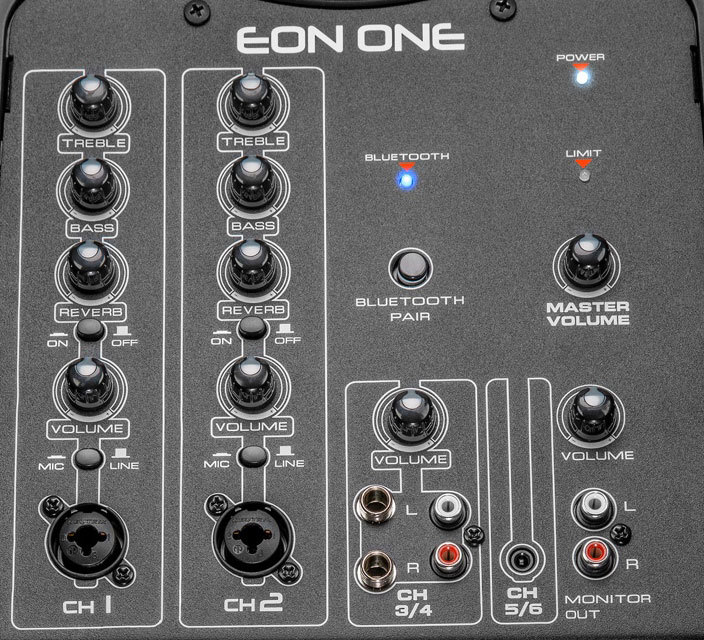 Встроенный шестиканальный микшер обеспечивает удобство управления и гибкость настройки звучания. Особенность данной модели – это наличие возможности подключения через Bluetooth и проигрывания музыки непосредственно с мобильных устройств. Система EON ONE отличается компактными размерами, простотой и удобством установки, что позволяет использовать её для живых выступлений, на конференциях и различных выездных мероприятиях.