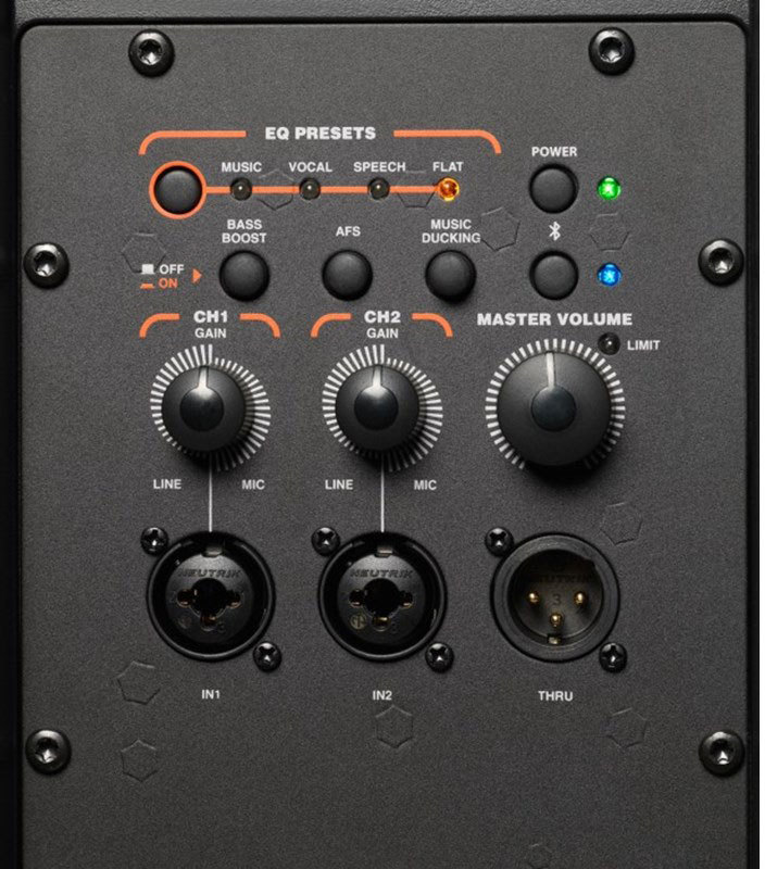 Встроенный подавитель обратной связи избавит ваши мероприятия от неприятных «заводок» микрофона – вы будете уверены в качестве своего выступления. Проигрывайте музыку, саундтреки или фоновое музыкальное сопровождение с портативных устройств через Bluetooth® 5.0. Активируя функцию даккинга, ваш голос будет всегда отчетливо слышен на фоне музыкальной подложки.