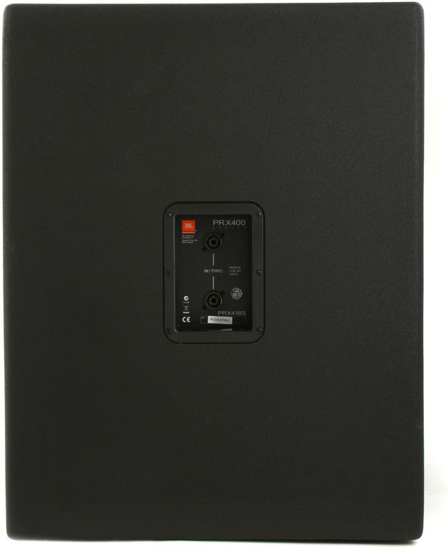 Компактный сабвуфер JBL PRX418S обладает системой выходных разъемов, делающей возможным подключение различных кабелей. В стандартную комплектацию данной модели включены батареи, подключающие низкочастотный динамик.