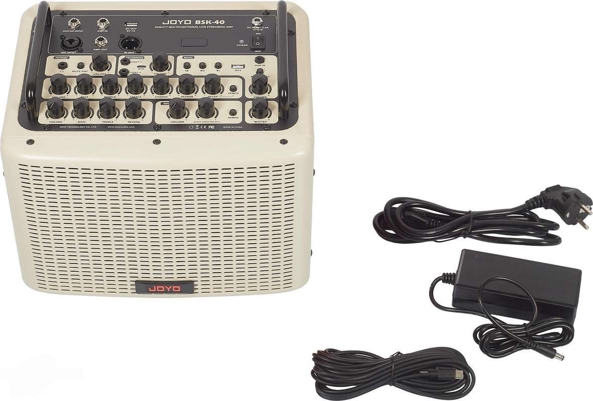 Joyo создали внешний вид, функции и алгоритм BSK-40 принимая во внимание потребности гитариста. После полной зарядки комбик можно использовать около 5 часов на открытом воздухе.