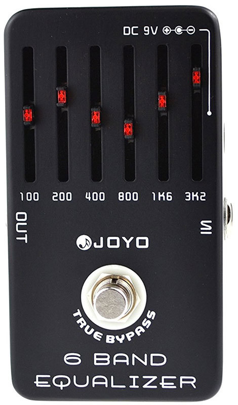 Joyo JF-11 EQ - гитарный эквалайзер, клон MXR 6 Band Equalizer. В вашем распоряжении 6 частот: 100Hz, 200Hz, 400Hz, 800Hz, 1.6MHz и 3.2MHz. На каждой частоте плюс/минус 18 дБ громкости. True bypass - не жрёт сигнал в выключенном состоянии. Прочный алюминиевый корпус. Бюджетный вариант, если жалко денег на MXR.