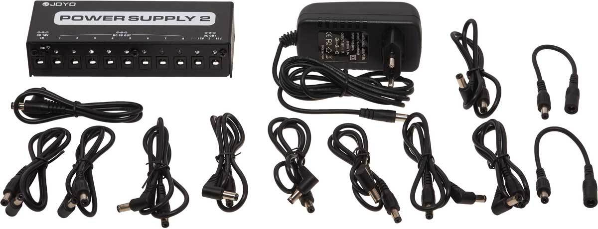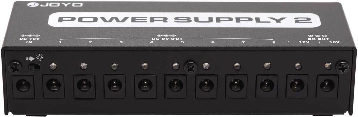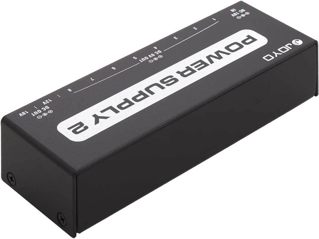 JOYO JP-02 - блок питания для педалей эффектов на 10 выходов с фильтром от сетевых наводок и раздельной защитой от короткого замыкания и перегрузки на каждом выходе.