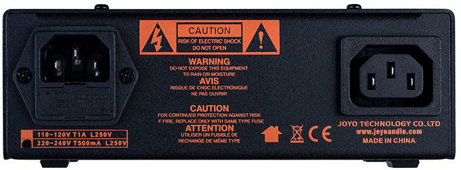 Все это гарантирует надежную устойчивую работу без шума и гудения, что обеспечивает чистое и прозрачное звучание ваших педалей эффектов. Кроме того, в блоке предусмотрен выход переменного тока для последовательного подключения еще одного блока питания JOYO JP-04, если надо раздать питание на большее количество педалей (всего можно залинковать до 5 блоков питания). Блок питания работает в сетях от 110 В (США) до 240 В (Великобритания), для корректной работы в той или иной сети необходимо заменить предохранитель, по умолчанию стоит предохранитель, соответствующий входному вольтажу страны-импортера (для РФ и Китая это 220 В).