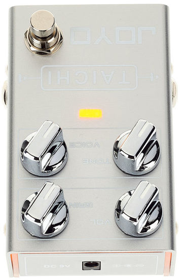 В Joyo R-02 Taichi чуть больше компрессии и сустейна чем в Tauren. Четыре регулятора позволяют добиться контроля над громкостью, гейном, тоном и характером звука педали.