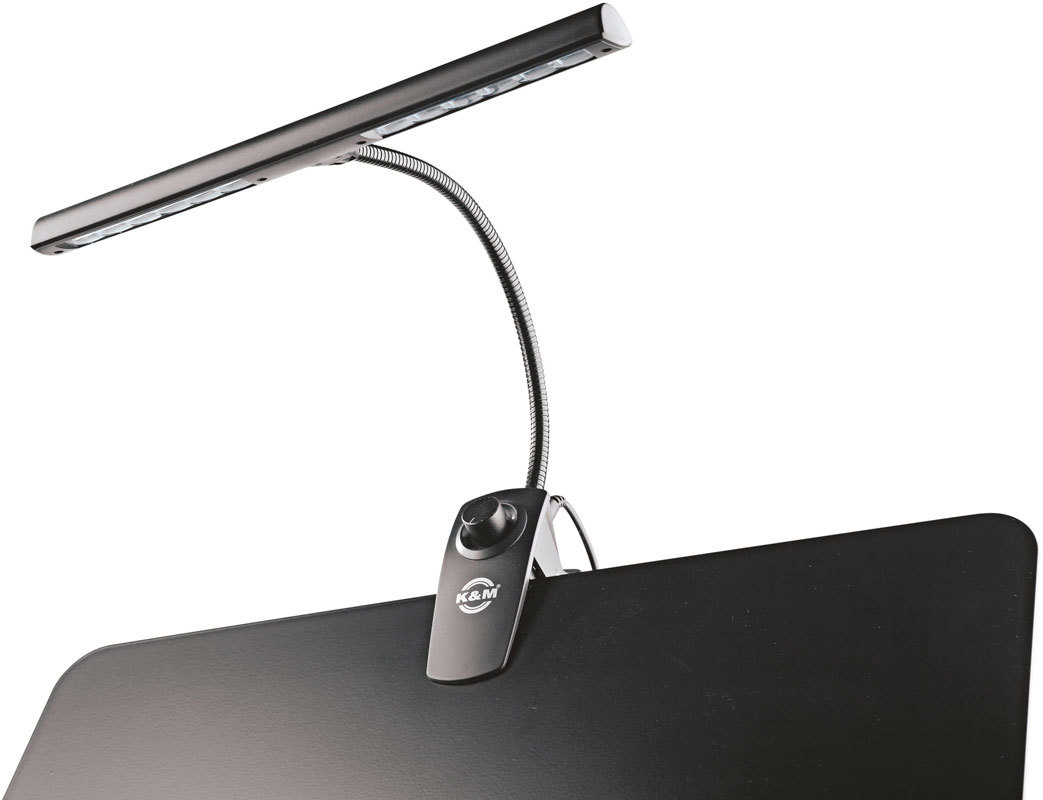 K&M 12295-018-55 Music Stand Dimmer Light Black - подсветка для нот на гибком креплении, на прищепке, 12 светодиодов, диммер, 2х1400 lux, кабель 3 метра