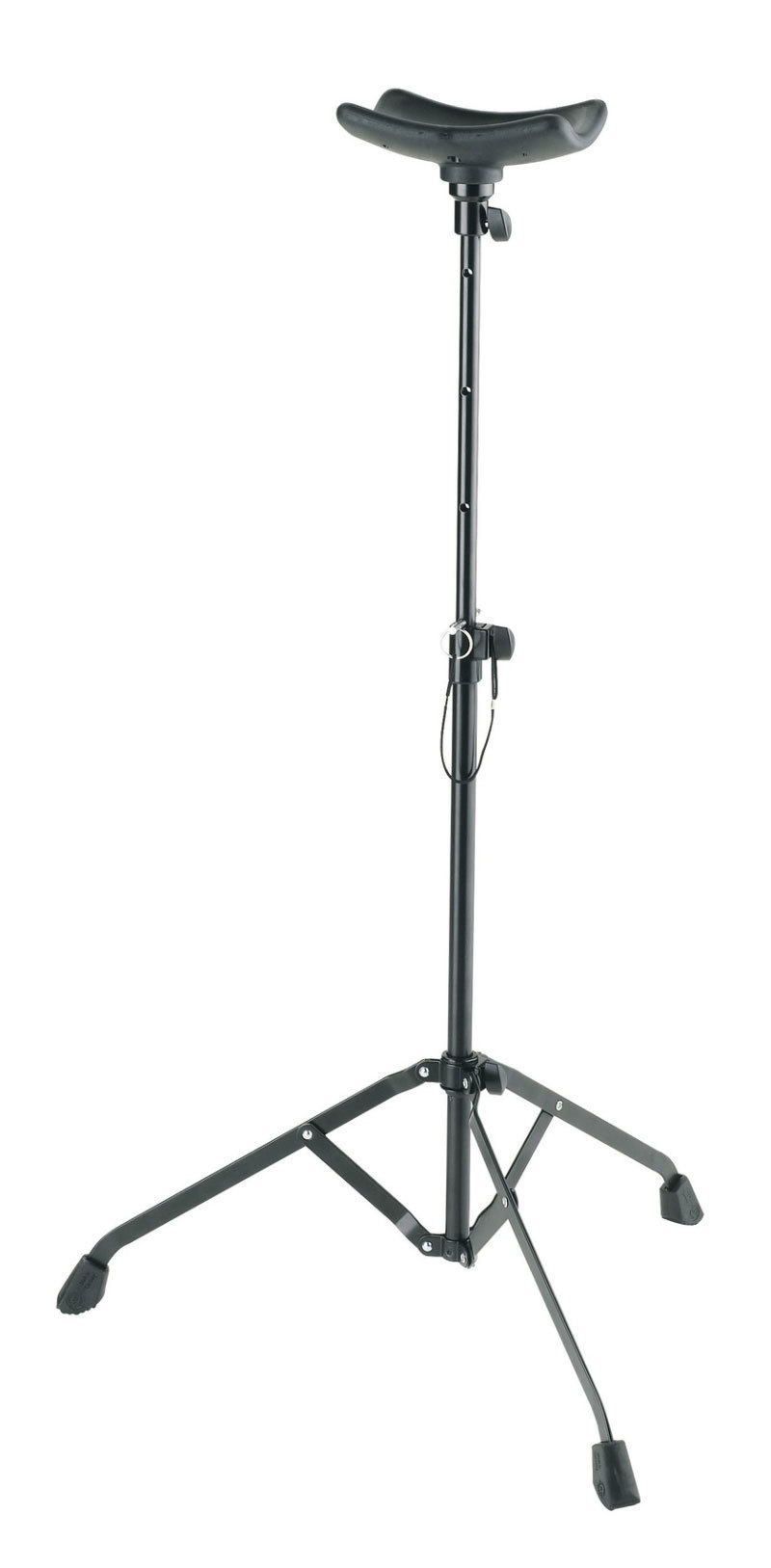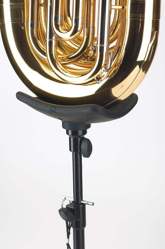 Стойка совместима со всеми моделями тубы, идеально подходит для игры в положении сидя. В конструкции стойки используется двухсекционный трубчатый удлинитель с возможностью регулировки высоты. Компактные габаритные размеры и вес стойки не превышают 3 кг.