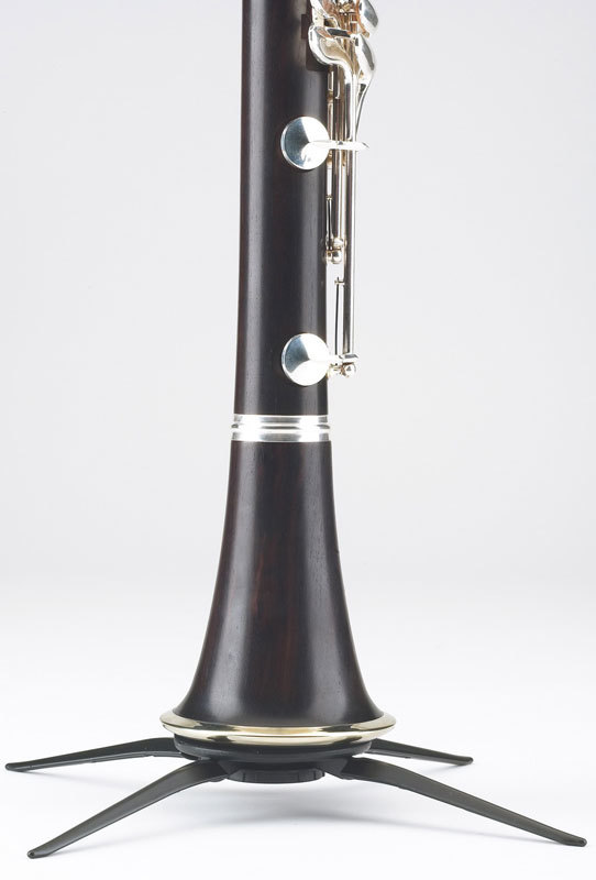 Основание на 4-х металических оцинкованных ножках для максимальной устойчивости. Держатель кларнета пластиковый черный. Ножки ввинчиваются в конус для экономии места при транспортировке в раструбе инструмента.