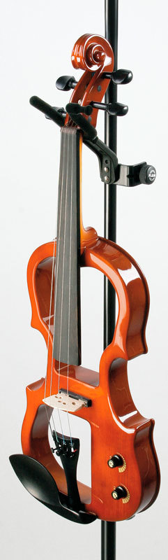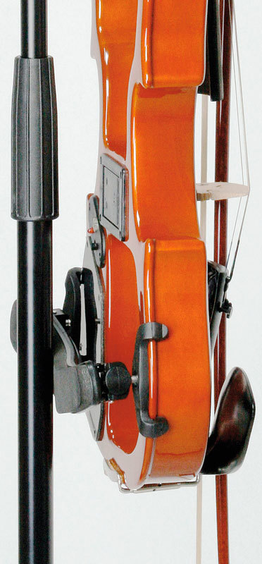 Стальной черный зажим с пластиковым держателем U образного вида. Углубленная форма лапок предотвращает инструмент от падения. Одна из лапок специально приспособлена, чтобы можно было повесить смычок.