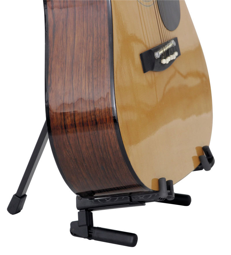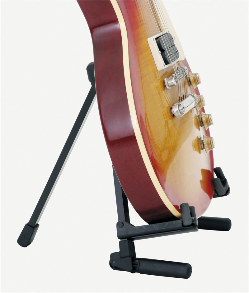 - Регулируемые опорные консоли позволяют использовать стойку для любых, как электрических, так и акустических гитар.