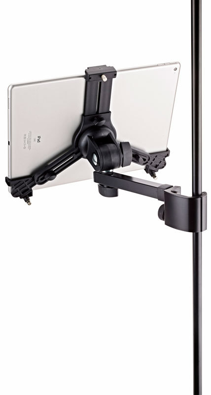 K&M 19791-016-55 универсальный держатель для планшетов с креплением на микрофонную стойку диам до 3 см/на разъём 3/8”
