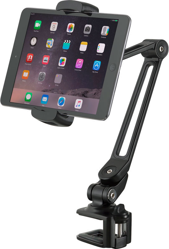 Стильный и практичный держатель для смартфонов и планшетов с настольным зажимом. Держатель вмещает устройства размером от 10,2 до 13 дюймов, что соответствует диапазону зажима от 130 до 224 мм. Кронштейны и монтажная поверхность покрыты нескользящей резиной для дополнительной устойчивости, спокойствия и мягкого захвата. Шарообразная головка обеспечивает бесступенчатое индивидуальное позиционирование. Удлинительный кронштейн вращается на 360° и может быть индивидуально отрегулирован по углу, высоте и диапазону поворота. Диапазон зажима настольной струбцины составляет от 10 до 35 мм. Поверхности зажима покрыты резиной, что защищает стол от повреждений.