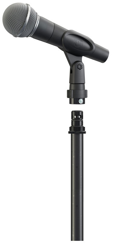 Нижняя секция ввинчивается в 3/8 "или 5/8" резьбовое соединение микрофонной стойки, а верхняя секция позволяет прикрепить микрофонный зажим или другое оборудование с резьбовым соединением 3/8 "или 5/8".