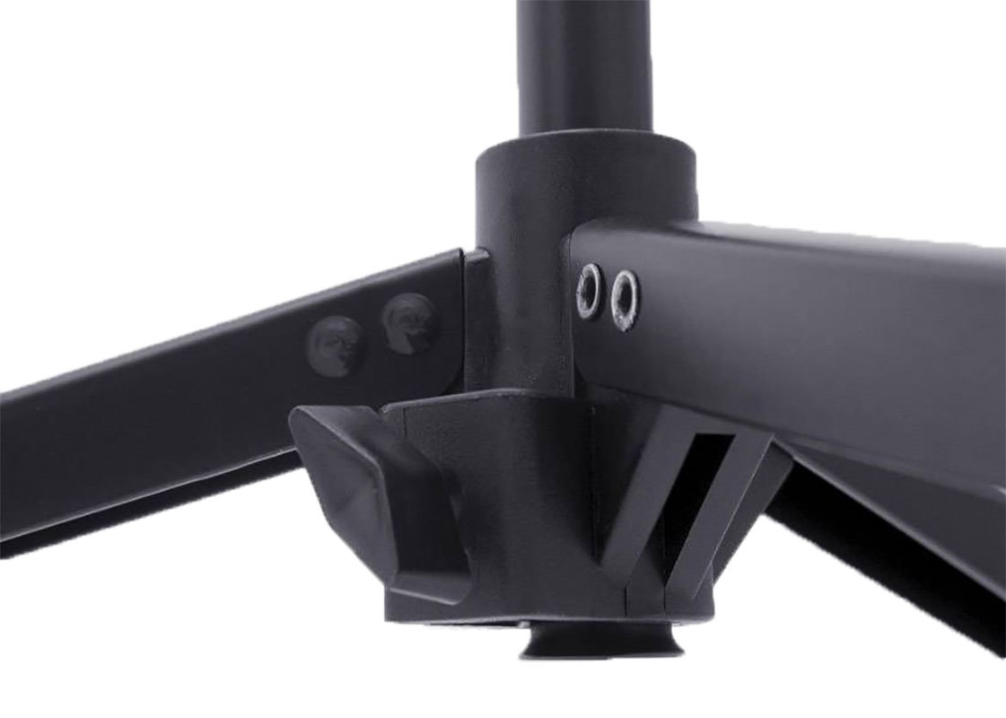 Все компоненты креплений с легкостью закручиваются руками без использования дополнительного оборудования. Длина наклонной стрелы составляет 680 мм. Все элементы стойки легко регулируются одним человеком. В качестве прочных фиксаторов положения и длины/высоты выдвигающихся частей используются прочные стальные зажимные и стопорные винтовые механизмы при помощи которых можно быстро изменить высоту стойки и зафиксировать ее положение.