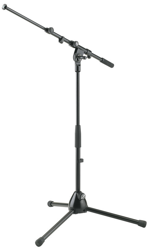 KONIG&MEYER 25900.300.55 - низкая микрофонная стойка с журавлем, черная, высота 425/645 мм, длина журавля 470/775 мм. Телескопический штативом, складывающиеся ножки, выдвижная двухэлементная стрела.