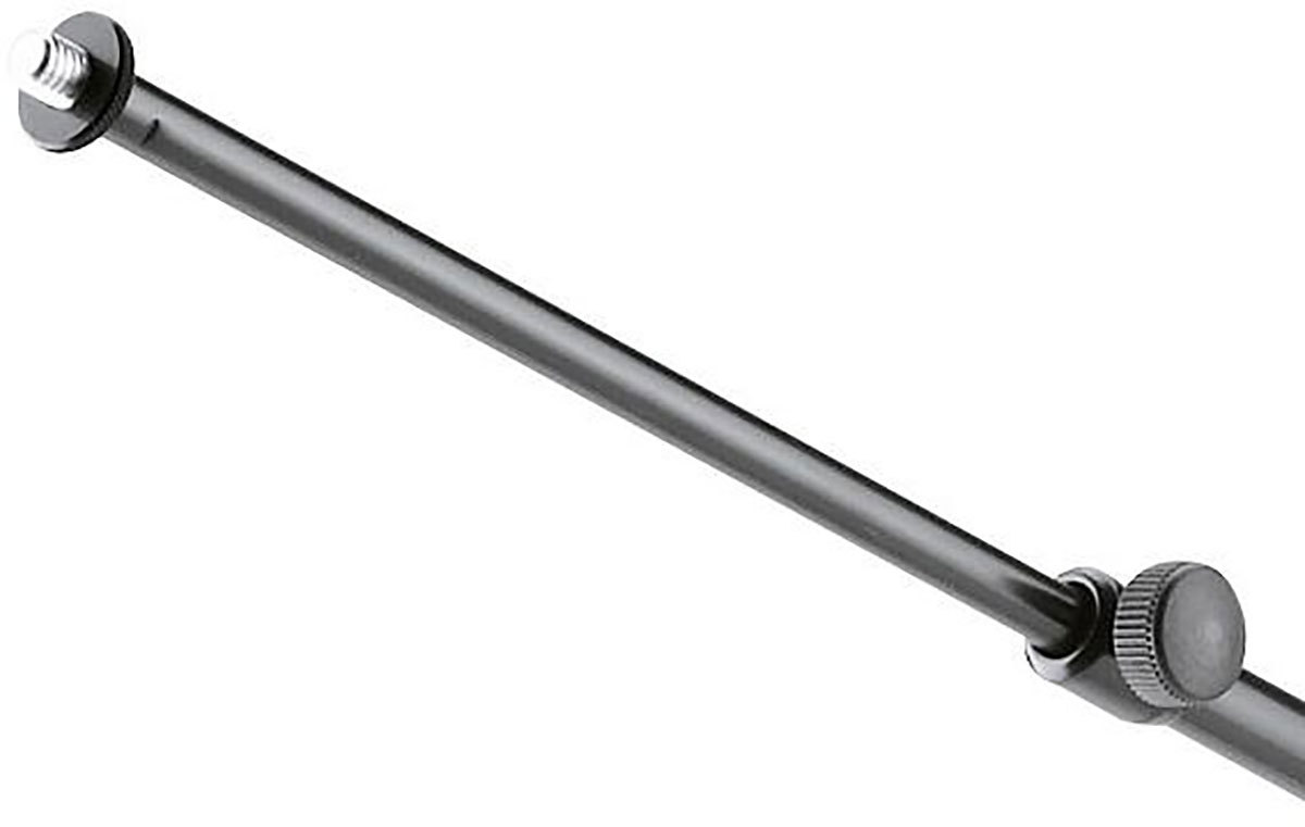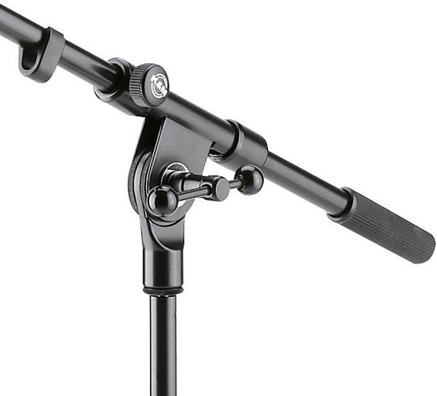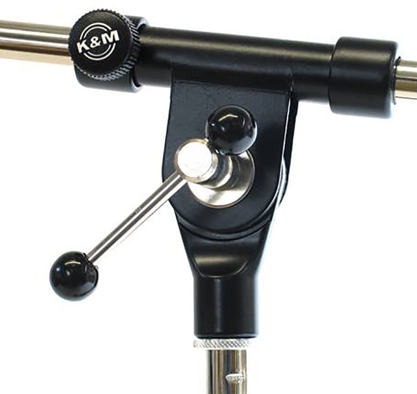 Верхняя часть микрофонной стойки оснащена журавлём с фиксатором угла наклона, а также несколькими зажимными/стопорными винтами и основным фиксирующим винтом. Угол наклонажуравля легко регулируется и фиксируется при помощи специального зажимного элемента. Длина журавля изменяемая, она составляет от 425 мм. до 645 мм. Все элементы стойки легко регулируются.
