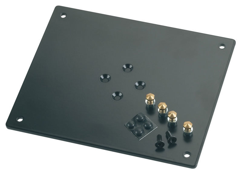 Konig&Meyer 26792-024-56 полка для крепления студийных мониторов на напольные подставки 26790 или 26795, размеры 240х5х200 мм, сталь, черная, крепеж в комплекте, вес 1,8 кг