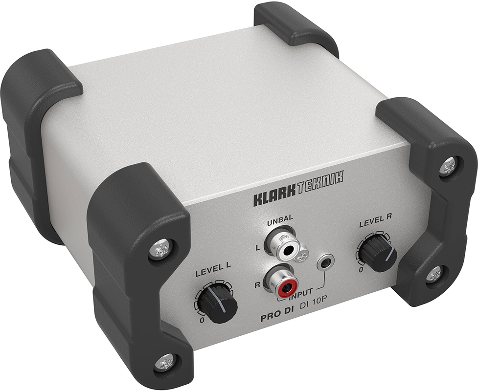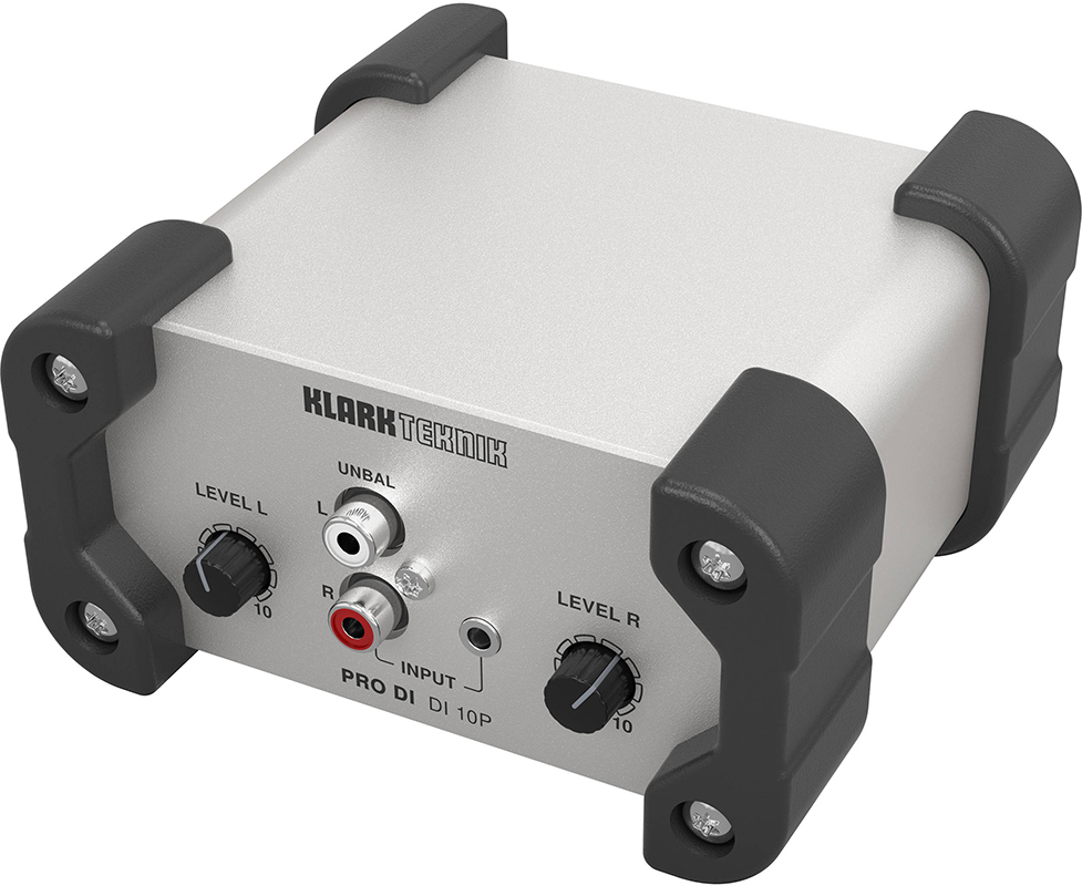 Klark Teknik DI 10P дибокс пассивный, стереовходы RCA и mini-Jack, регуляторы уровня, трансформаторный моно выход