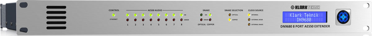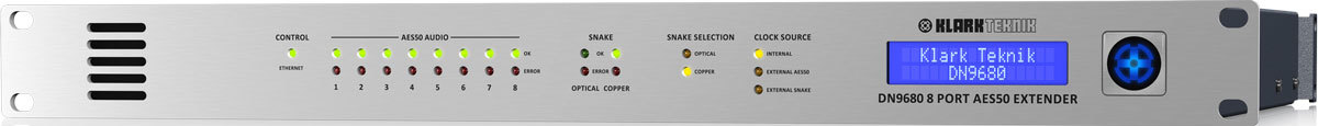 DN9680 поддерживает как оптоволоконные, так и медные змеи, используя цифровой аудио канал Gigabit Ethernet "точка-точка". Для подключения оптоволоконной змейки используется двухволоконный разъем Neutrik opticalCON DUO, обеспечивающий двунаправленную оптическую связь по одному одномодовому двухволоконному кабелю. Дополнительный комплект модернизации DN9680-MM позволяет преобразовать устройство для использования с многомодовым двухволоконным кабелем.