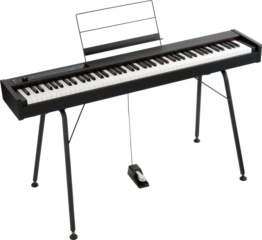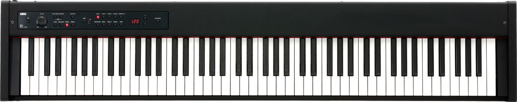Korg D1 – сценическое цифровое пианино / MIDI-контроллер на 88 клавиш с взвешенной молоточковой механикой, 30 тембрами, встроенными эффектами и фут-свитчем.
