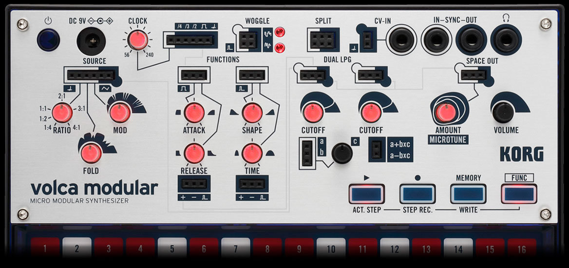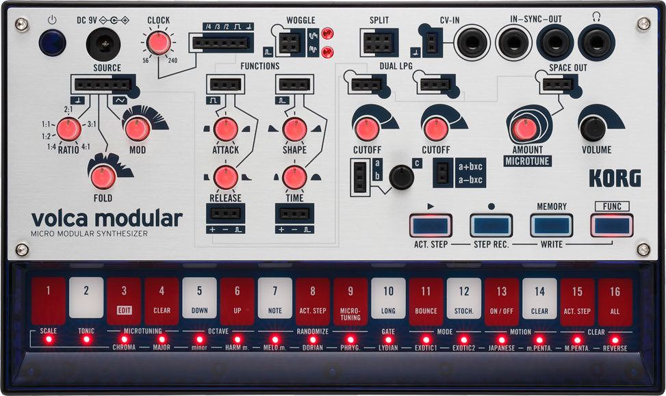 В то время как volca modular является полумодульным синтезатором, он оснащен полноценным 16-ступенчатым секвенсором, обеспечивающим широкий спектр функций, позволяя вам наслаждаться автоматическим исполнением даже в автономном режиме.