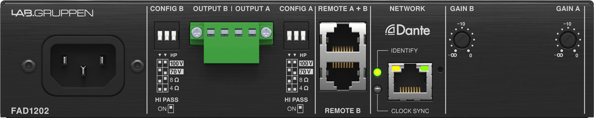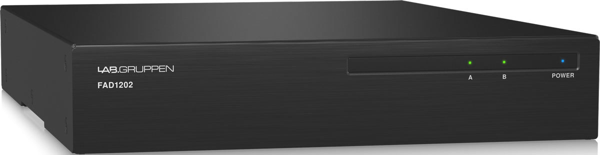 Lab Gruppen FAD1202 усилитель инсталляционный, вход только Dante, класс D, 2 канала, 4/8 Ом, 70/100 B - 120 Вт, подключение настенного регулятора, безвентиляторный