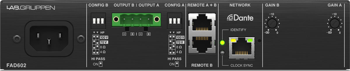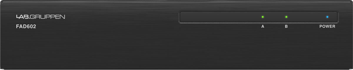 Lab Gruppen FAD602 усилитель инсталляционный, вход только Dante, класс D, 2 канала, 4/8 Ом,70/100 B - 60 Вт, подключение настенного регулятора, безвентиляторный