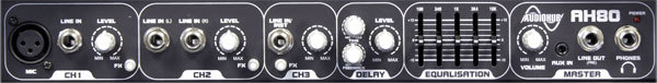 Комбоусилитель AH80 звучит отлично - мощно и "по-честному", т.е. входящий сигнал не искажается и не окрашивается, регулируйте только уровень громкости. AH150 звучит настолько чисто, что вам придется пользоваться эквалайзером только для того, чтобы адаптировать комбоусилитель под новую акустику площадки в случае переезда.