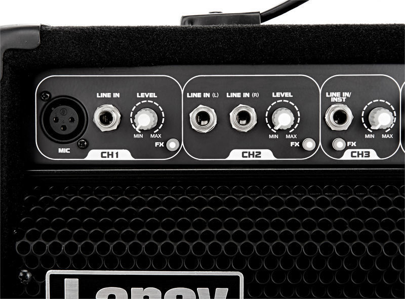 Микшерная часть комбоусилителя имеет 3 канала усиления входных сигналов. Каждый канал имеет отдельные регуляторы высоких и низких частот. Первый вход предназначен для подключения микрофонов или источников линейных сигналов. Каналы 2 предназначен для подключения только источников линейного сигнала, например клавишных инструментов или МР3 плееров. Вход номер 3 предназначен для подключения стерео источников линейного сисгнала.