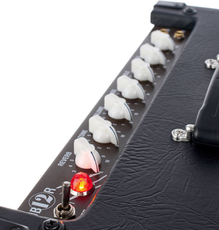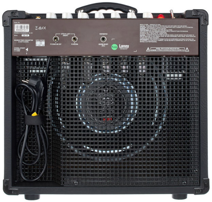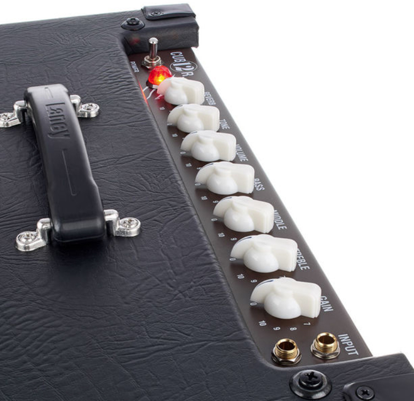 Laney CUB12R имеет двенадцатидюймовый динамик, который даёт тот самый насыщенный, а главное, винтажный ламповый звук. Несмотря на то, что усилитель относится к «компактному» типу, по-сравнению со своими «собратьями», он похож на полноценный усилитель больше, чем они. Набор регуляторов, надо сказать, джентльменский: Gain, Treble, Middle, Bass, Volume, Tone. Выходной каскад усилителя построен на двух лампах EL84, благодаря которым Вы услышите этот плотный звук. Представьте себе насыщенный овердрайв и много-много гейна.