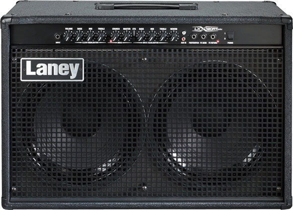 Laney LX120RT Twin Гитарный комбо 120 Вт, 2 х 12'' Celestion 2 независимых канала с 3-х полосным эквалайзером и дисторшн, пружинный ревербератор, CD вход, размеры 453x674x273 мм, вес 18,5 кг.