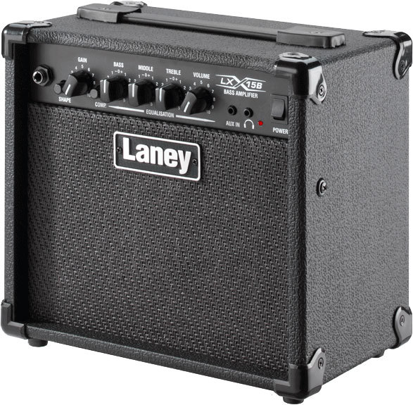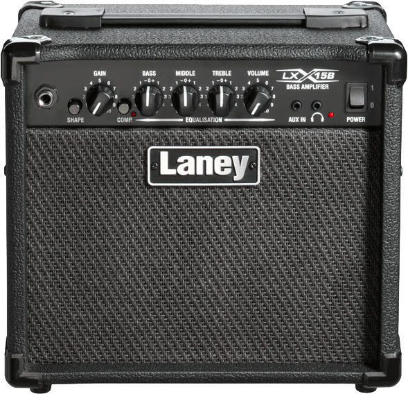 Laney LX15B басовый комбо 15 Вт, 2х5'' Custom Drivers, одноканальный с 3-х полосным эквалайзером и компрессором, CD/MP3 вход, выход на наушники, размеры 310х281х215 мм, вес 6,5 кг. Цвет Black.