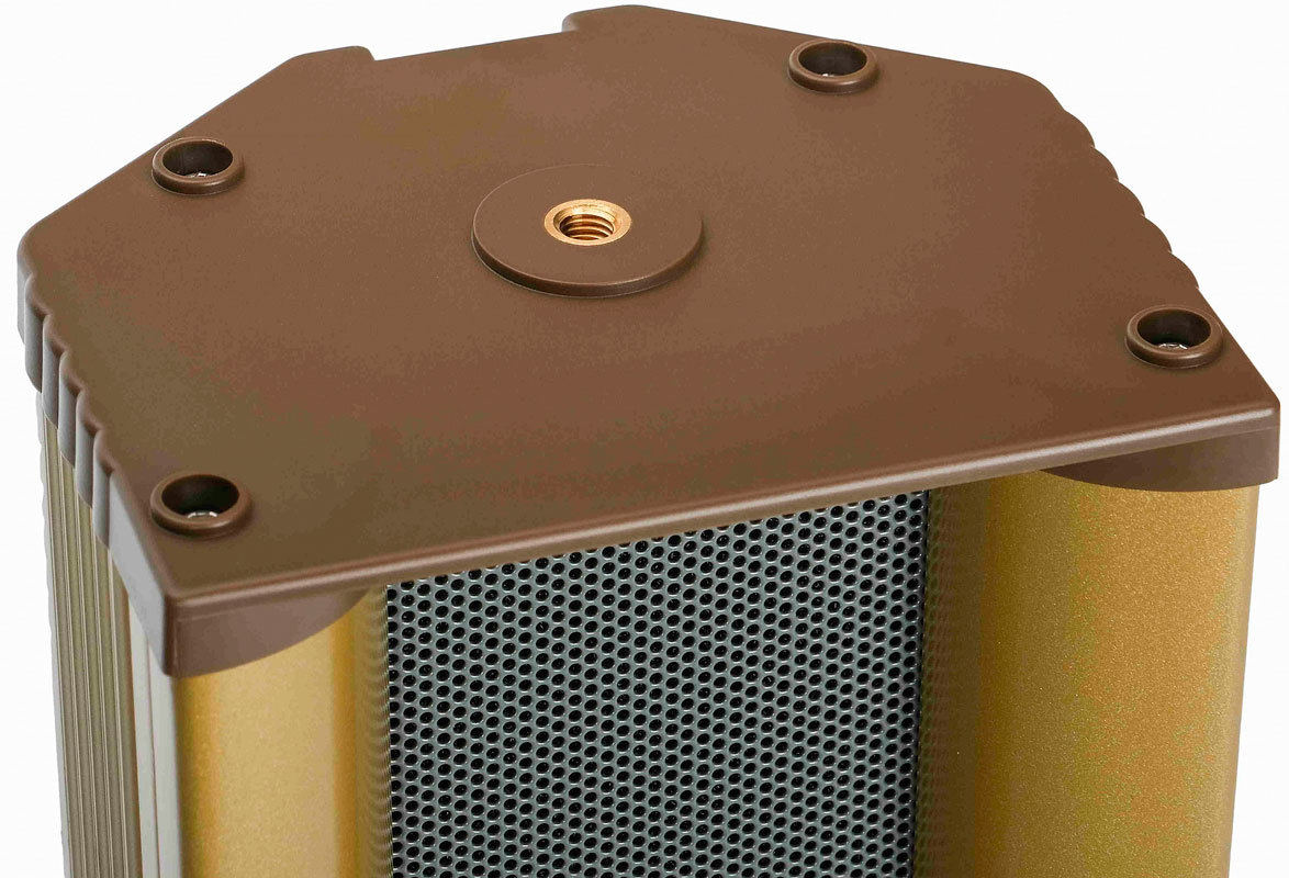 Динамики 4" x 3 и 2.5" x 1 с широкой частотной характеристикой 140-14000 Гц и выходная мощность 30 Вт делают громкоговоритель хорошо подходящим для уличных мероприятий, различающихся размерами площадей и фоновыми шумами. Простое и надежное крепление на стену.