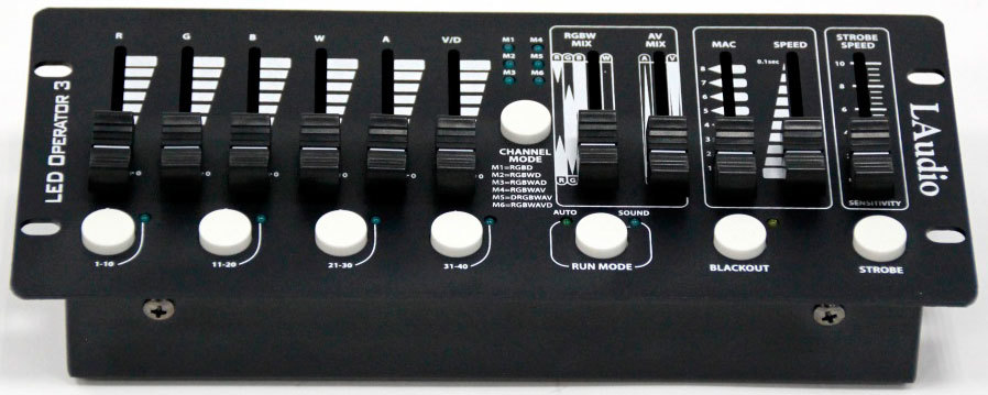 - Скорость стробоскопа 1-20 Гц, управление фейдером.