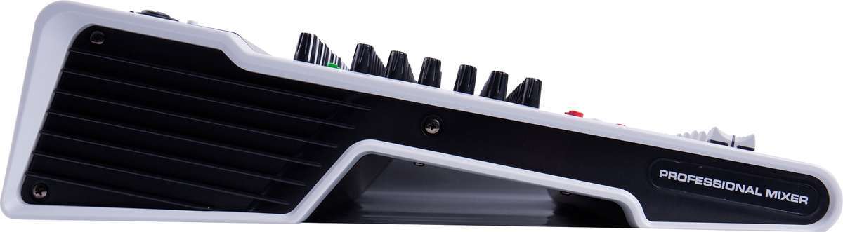 - Профессиональный микшер среднего размера с ультра-малошумящим дискретным микрофонным предусилителем и фантомным питанием 48 В.