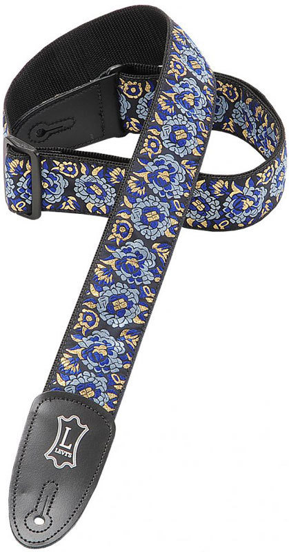 Levy's M8AS NAV гитарный ремень, полипропиленовая нижняя черная сторона, ширина 5 см, рисунок азиатское жакардовое переплетение, кожанные наконечники, регулируется длина до 137 см