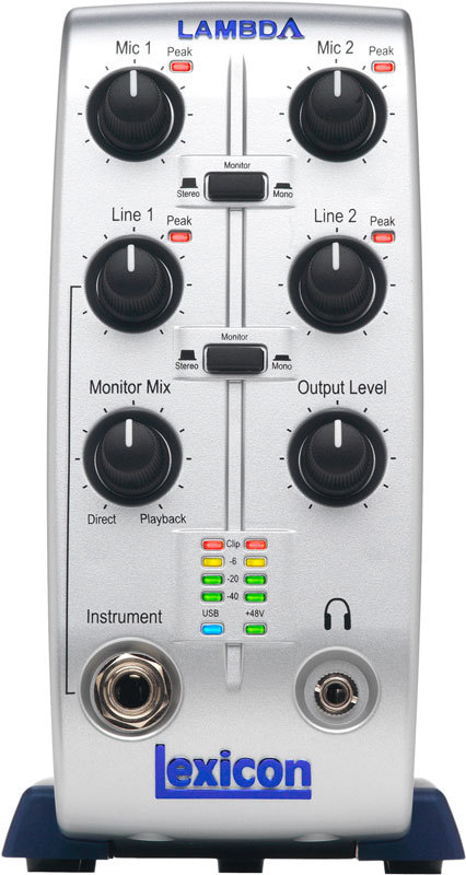 Отличается Lambda более компактным и доступным исполнением, а также удобным и простым в использовании питанием по USB. Так же как и Omega, Lambda - это полноценная студия звукозаписи, предоставляющая возможность аппаратного микширования с помощью USB-микшера (4 входа x 2 шины x 2 выхода).