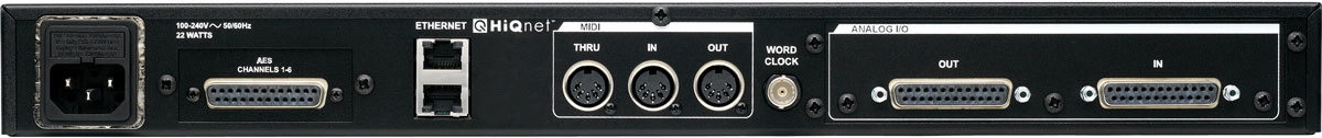 Lexicon PCM96SUR-A сурраунд процессор эффектов. 6 аналоговых входов/выходов - 2 x D-Sub 25 pin. 6 цифровых AES/EBU входов/выходов - 1 х D-Sub 25 pin. MIDI - in/out/thru, Word Clock, Fire Wire. Ethernet - управление и контроль в System Arhitect (HiQ net).