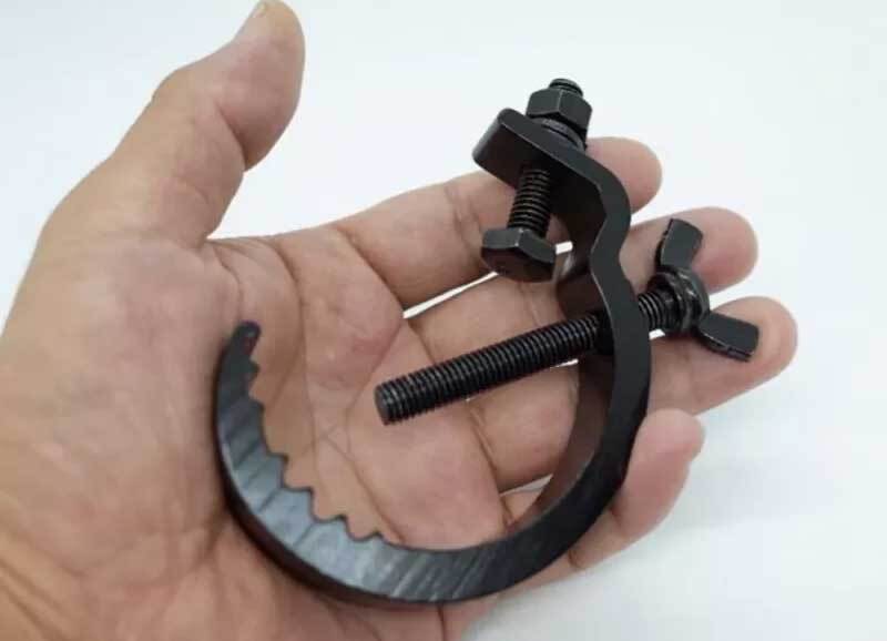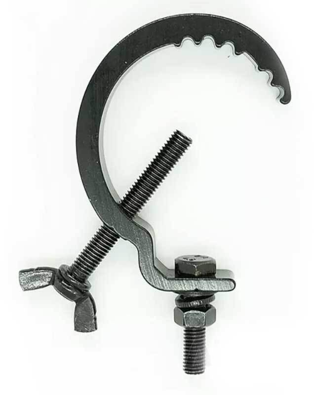 Струбцина для крепления световых приборов или другого оборудования к сценическим фермам или трубам с диаметром от 20 мм до 52 мм.