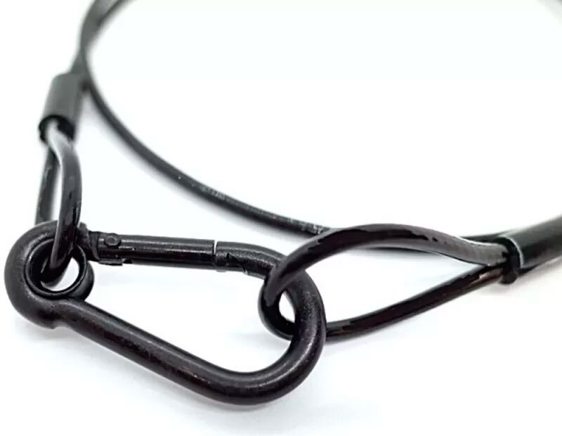 Lexor BXS05B1000-PVC Страховочный трос, диаметр 5 мм, длина 1000 мм, в черной оболочке ПВХ, макс. нагрузка 120 кг, карабин 8 мм, сталь