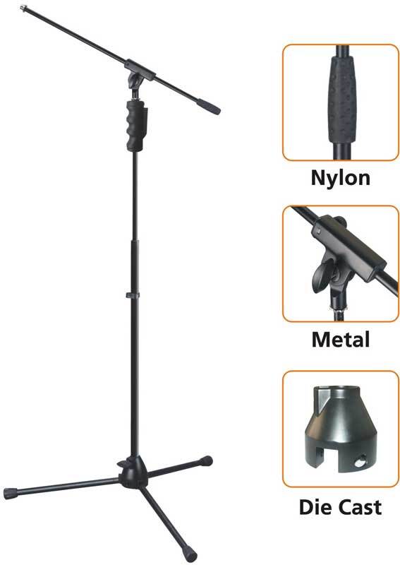 LK Electronics MS087 профессиональная напольная микрофонная стойка ''журавль'', три ноги, база литая, регулировка высоты одной рукой 1050-1620 мм, длина журавля 750 мм, цвет черный