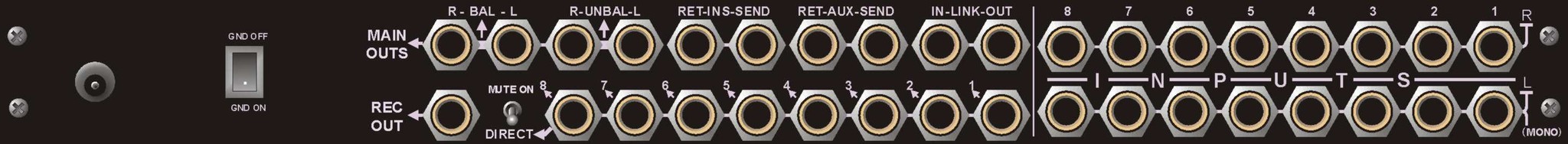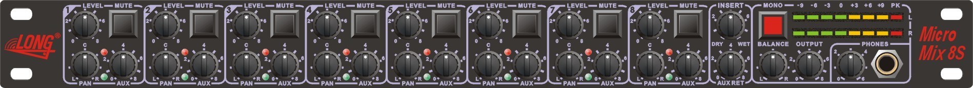 Представляем Вам новинку: 8-входовой, полностью стереофонический микшер. Стереофонический от всех входов и до всех выходов, включая инсерты!